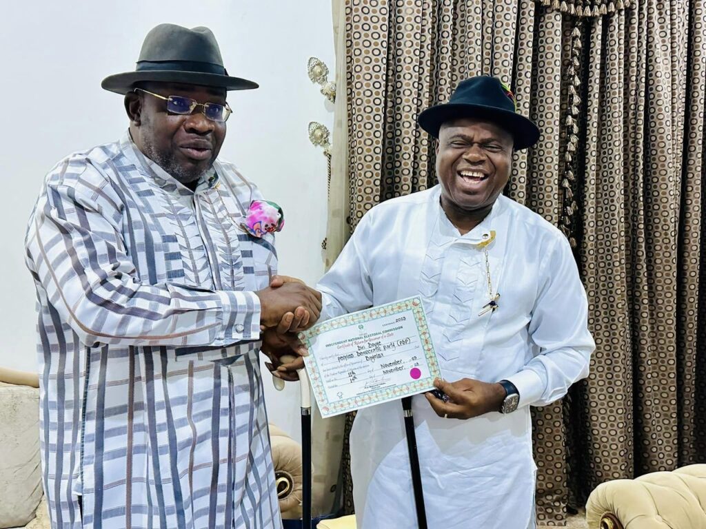 Governor Douye Diri Presents Certificate of Return: A Visit of Congratulations and Commitment to Bayelsa’s Progress